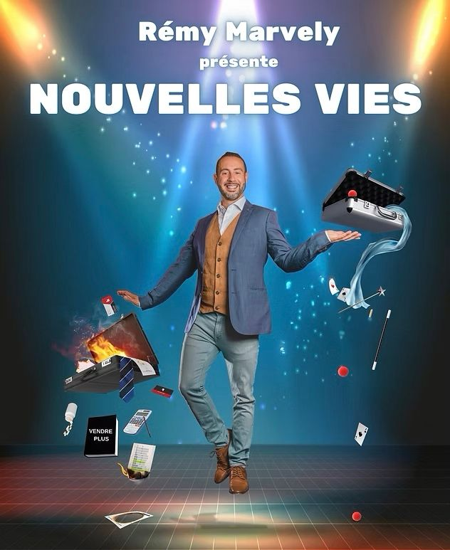 Nouvelles vies, un One Magic Show conçu et interprété par Rémy Marvely, est un spectacle de magie et d’humour porteur d’un message de vie forte. Plus qu’un show de magie , Nouvelles vies c’est le parcours inspirant d’un homme qui a su transformer une épreuve en tremplin, raconté avec sensibilité, humour, et des illusions pleines de symbolisme. Un spectacle touchant, dynamique, et inspirant : un mélange de rires… et d’émotions – mais toujours pour mieux rebondir.
