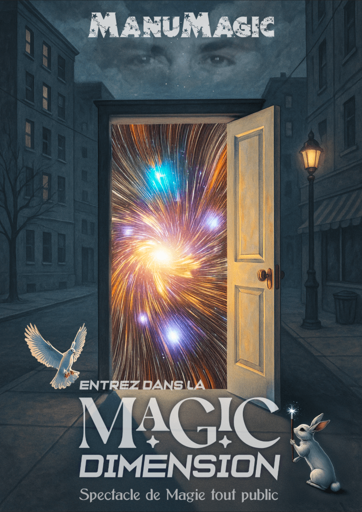 Et si une simple porte pouvait changer votre réalité ? Avec la MAGIC Dimension, ManuMagic et son équipe vous invitent à vivre une expérience sensorielle et visuelle unique, à la croisée de l’art de l’illusion, du théâtre visuel et de l’exploration de l’imaginaire.